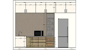 Kitchen crocary unit and wicker basket, some storage 2d dimensions