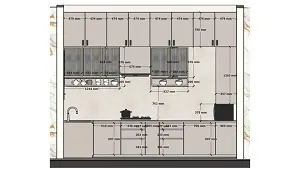 Kitchen front view all Cabinet 2d dimension