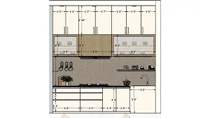 Kitchen gass oven area and wash area,some storage view 2d dimensions