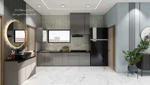Minimal kitchen plain ceiling design enhanced with modern LED profile light ceiling design, offering clean lines, soft illumination, and a sleek modern interior finish.