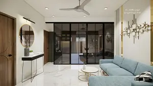 Living room decorative partion with fluted glass