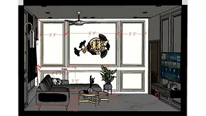 Living room decorative wall design 2d dimensions