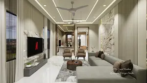 Living room showcasing comfortable seating area,bar counter and decorative wall ,sleek tv unit