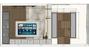 Living room tv unit and decorative wall design 2d dimensions