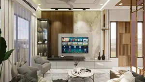 Living room tv unit and decorative wall design