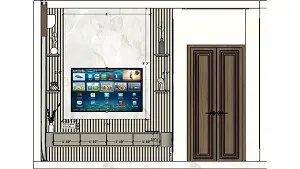 Living sleek tv unit and comfortable seating area 2d dimensions