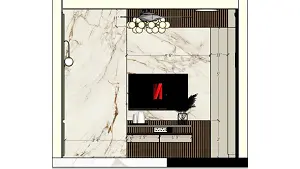 Marble finish laminate and wooden panelling in TV unit working drawing 2D