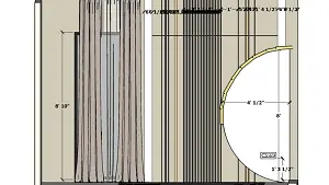 Master bedroom back wall with windows and half moon dressing unit dimensions