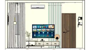Master Bedroom sleek tv unit and decorative wall design 2d dimensions