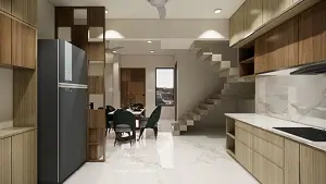 Modular kitchen from dining area view