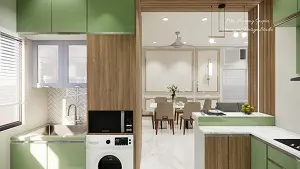 Modular Kitchen sink unit, tall unit & washing machine area view