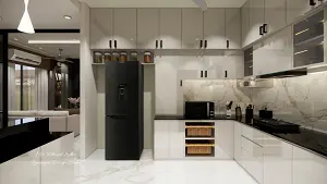 Modular kitchen wall with fridge loft SH shutter unit wicker basket unit microwave and wall unit