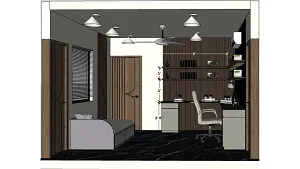 Office room showing sitting area with designing wall & work station 2D dimension