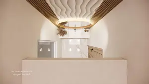 Modern staircase side wall design tiles showcasing wooden panel detailing and step lighting — an elegant staircase side wall design tiles layout for contemporary home staircase interiors.