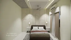 Parents Bedroom luxurious & comfortable bed and side table with decorative headboard wall