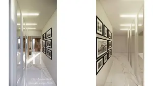 Passage area wall with photo frame design wall