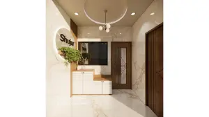 Passage front view and some storage and shoes cabinet with name plate