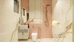 Pink tiles toilet