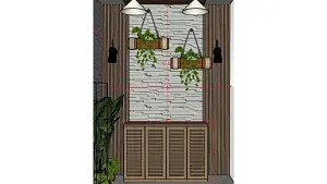 porch area showcasing shoes unit and decorative wall 2d dimensions