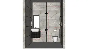 Powder Bathroom vanity and wc area and shower area 2d dimensions