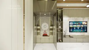 Puja area front view some storage & back side cnc jali cutting design