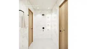 Shower area and some upen shelf storage