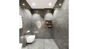 Toilet showcasing WC area and shower area with some shelf