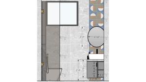 Toilet vanity with round mirror 2D measurements