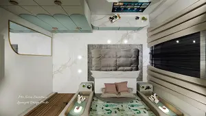 Kid's bedroom showing luxurious bed and head board wall design,both side table