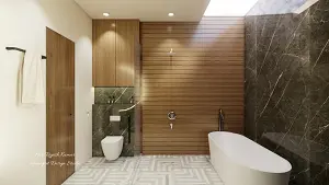 Washroom front view from wc area , shower area and bathtub area