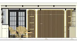 measurement image of a butiqe wall arch design and inside the those 3 arch wooden wpc panel is placed